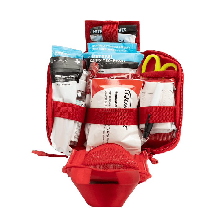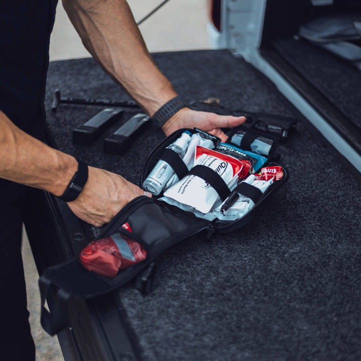 A micro trauma kit packed with essential life-saving supplies. Designed by medical and firearm professionals, a first aid kit perfect for hunting, the gun range, your car, and more.